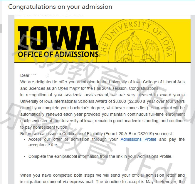 上海的Shen同学 University of Iowa 爱荷华大学 录取 @恭喜Shen同学录取!
